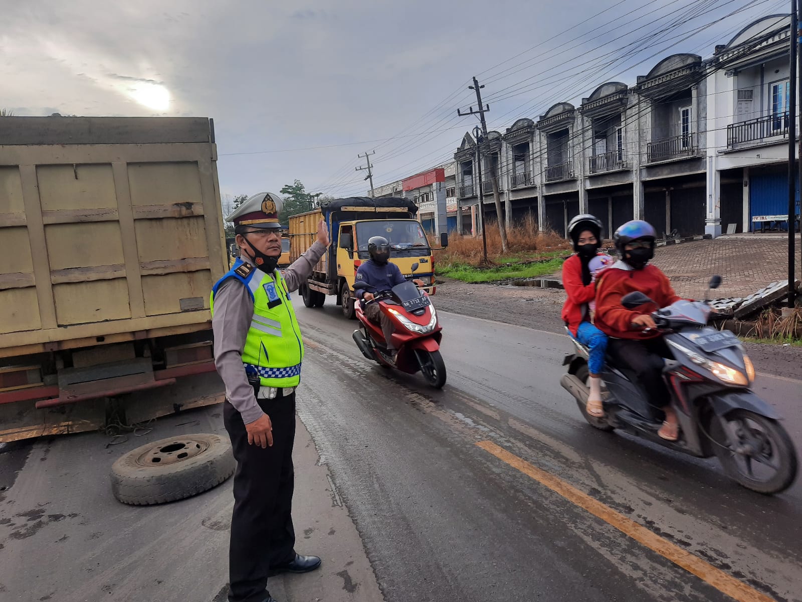 Truk Batubara Pecah Ban Sebabkan Kemacetan, Warga Lapor Bantuan Polisi Polda Jambi Via WhatsApp