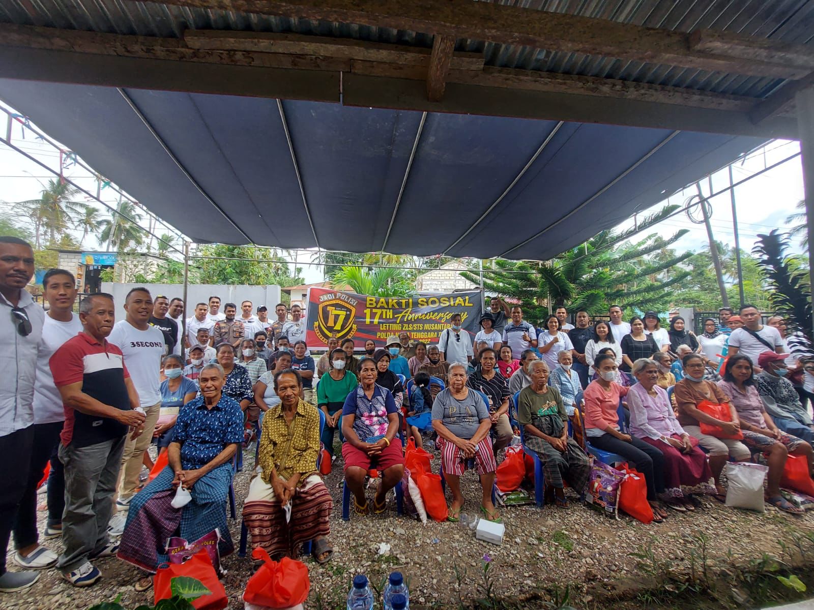 NTT – Dalam rangka Anniversary 17, Bintara Polri angkatan 26 gelombang 1 tahun 2005 atau ZLS/STS Polda NTT menggelar bakti sosial (Baksos) di Desa Manulai 1, Kecamatan Kupang Barat, Kabupaten Kupang, Sabtu (2/7/2022).