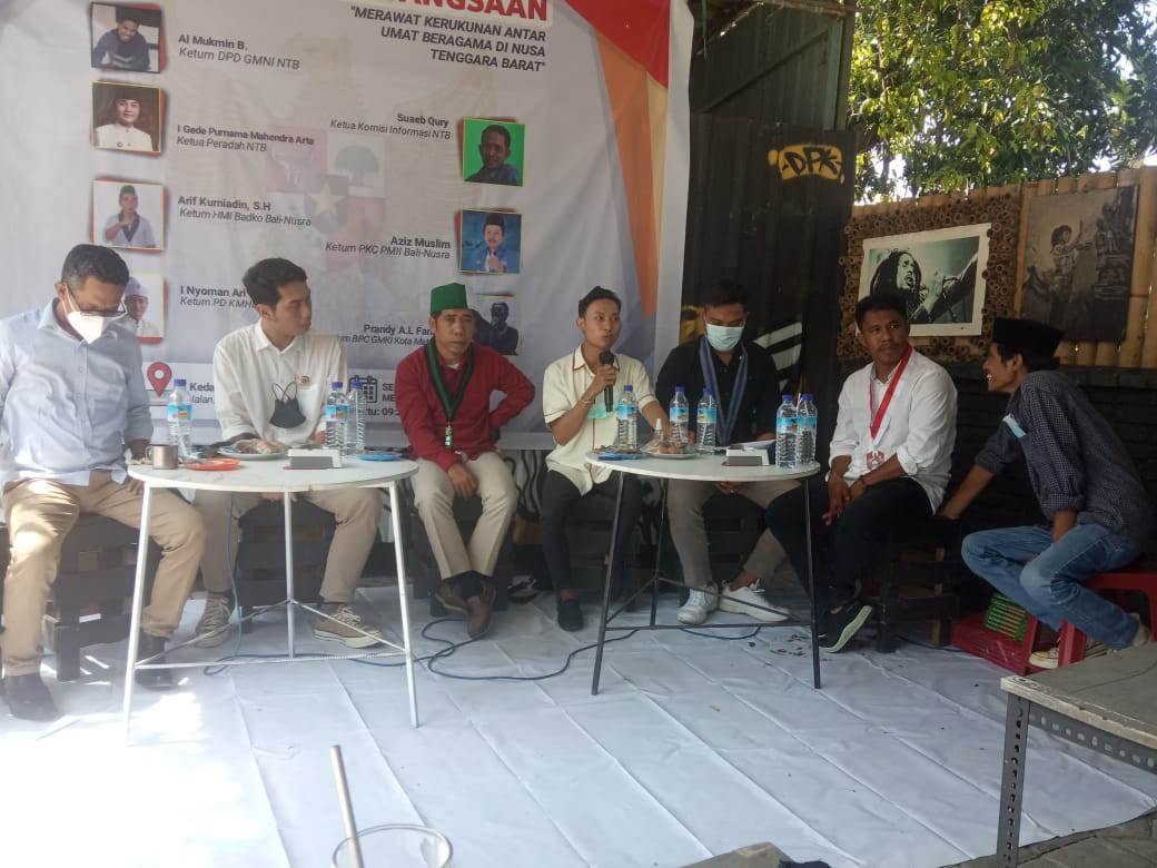 Nus Tenggara Barat – Salah satu upaya untuk menjaga agar situasi keamanan dan ketertiban nasional tetap terjaga bahkan hingga ke lini daerah tampaknya menjadi perhatian penting bagi para aktivis mahasiswa dari kalangan cipayung. Pasalnya, Gerakan Mahasiswa Nasional Indonesia (GMNI) Provinsi Nusa Tenggara Barat (NTB) pun melakukan dialog interaksi untuk memupuk rasa persatuan antar sesama.
