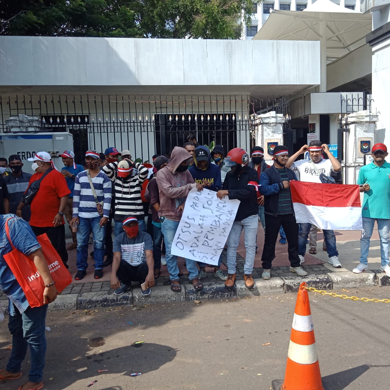 JAKARTA – Sejumlah mahasiswa asal Papua yang mengatasnamakan diri Koalisi Mahasiswa Papua Bersatu menggelar aksi unjuk rasa di depan gedung Kementerian Dalam Negeri.