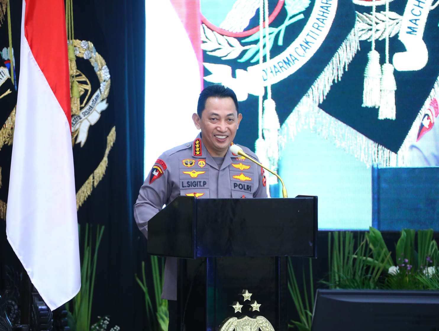 “Saya ingin mengibaratkan, ibarat organ tubuh maka di Polri ini ada berbagai macam unsur yang sudah diatur dimana seluruh organ tubuh ini bisa bekerja dengan baik apakah itu organ vital, panca indra, alat gerak sehingga tubuh kita yang bernama organisasi Polri ini betul-betul bisa berjalan dengan baik dan kuat,” kata Sigit.