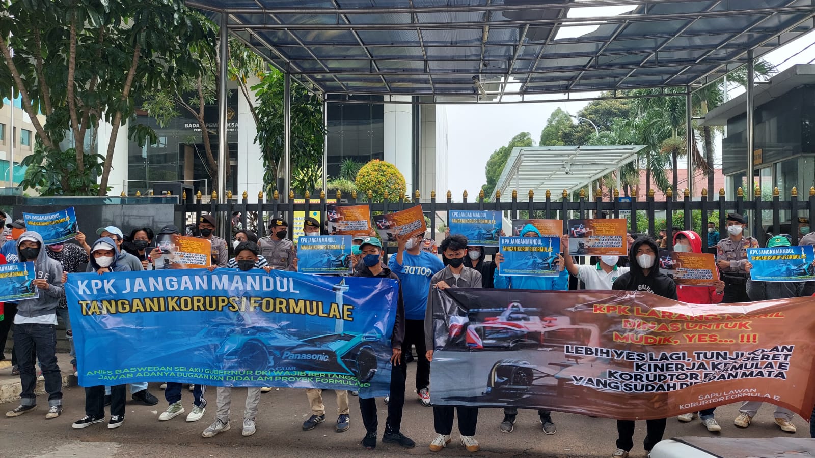 Selain di Gedung KPK, massa juga menggelar aksinya di Kantor BPK Provinsi DKI Jakarta. Mereka meminta KPK untuk segera bersurat ke BPK untuk melakukan audit investigatif terkait dugaan adanya kerugian negara pada ajang Formula E.