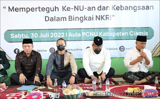 Dengan mengusung tema “Memperteguh ke NU an dan Kebangsaan dalam Bingkai NKRI” itu digelar di Aula PCNU Cijeungjing Ciamis, Sabtu (30/07/2022) dihadiri Kapolres Ciamis, Dandim 0613 Ciamis, Ketua DPRD Kab. Ciamis, Kepala Kemenag Kab. Ciamis, Kabag Kesra Pemkab Ciamis (Mewakili Bupati Ciamis), Ketua Tanfiziyah PCNU Kab. Ciamis dan para unsur Mustasyar, Syuriah, Tanfidziyah PC. NU juga perwakilan / MWC NU, perwakilan Pesantren RMI NU dan perwakilan lembaga atau Banom PCNU Kab. Ciamis.
