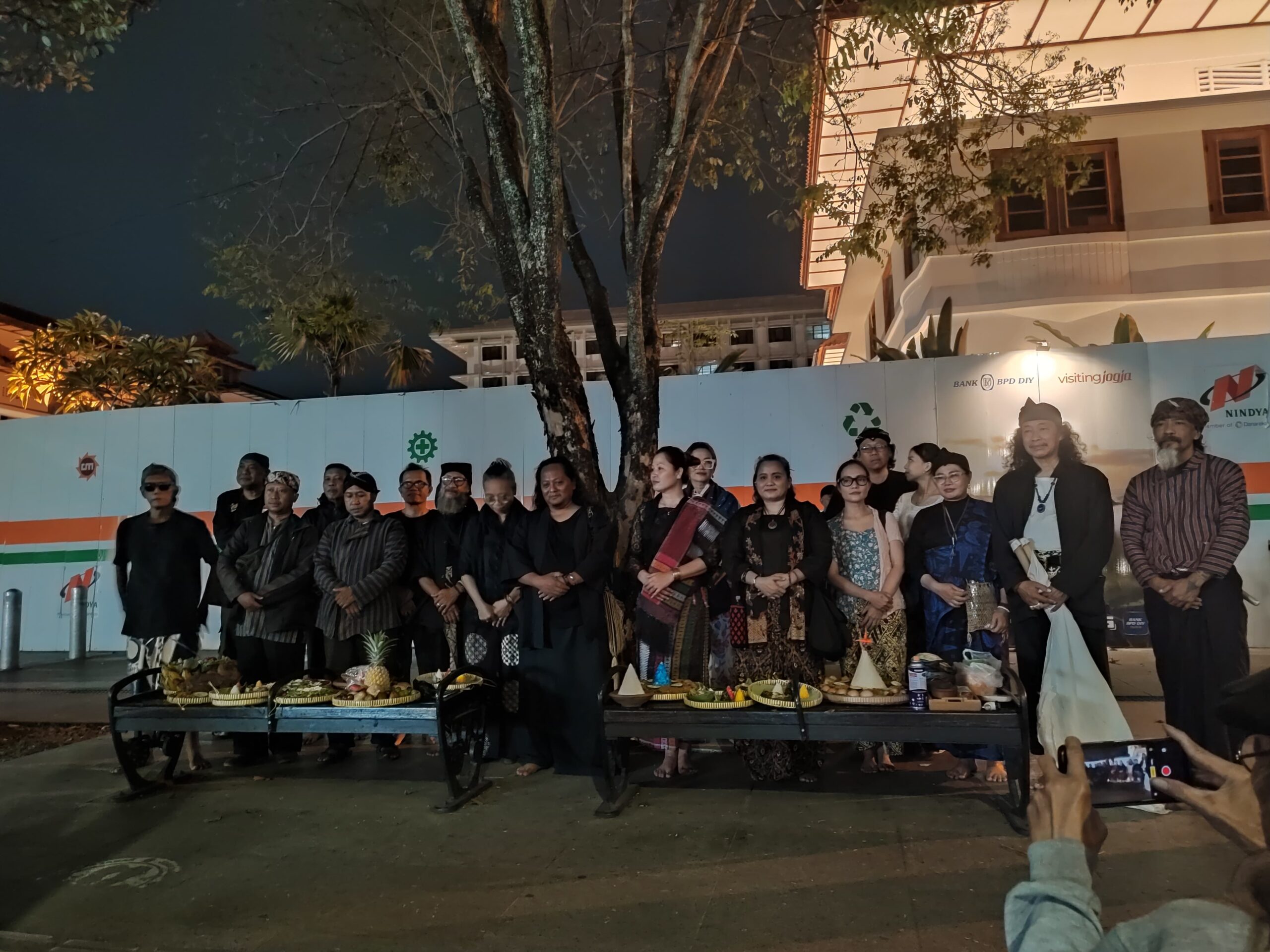 Yogyakarta – Yayasan Taman Sesaji Nusantara di dukung oleh berbagai komunitas budaya, menginisiasi gerakan Lampah Sesaji Rabuk Ayem Nagari. Disekenggarakan di Malioboro, Selasa (09/09). Dengan, berbaju adat dan tanpa alas kaki bergerak dari depan Hotel Ina Garuda dalam formasi barisan menuju Titik Nol dengan tapa bisu.