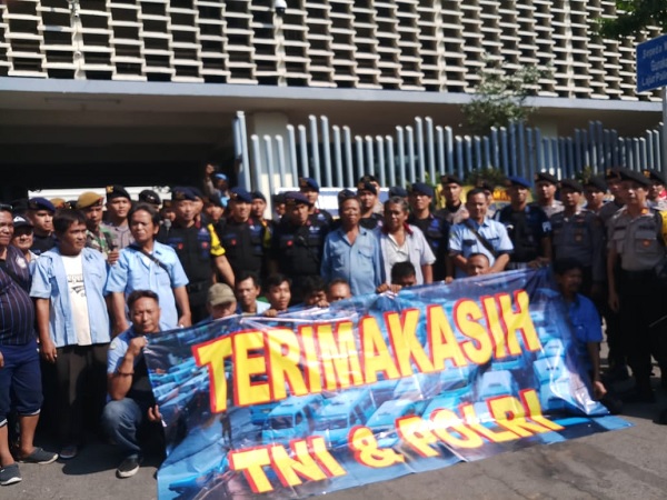 JAKARTA – Massa tergabung dalam Komunitas Awak Angkutan Umum Bersatu (AAUB) menggelar aksi simpatik di depan Kantor Bawaslu, Senin (31/5/2019). Mereka memberikan dukungan dan apresiasi kepada TNI-Polri yang sudah memberikan pelayanan pengamanan selama proses Pemilu. Khususnya saat menangani gerombolan perusuh yang keberatan dengan hasil Pemilu 2019 di Jakarta beberapa waktu lalu.